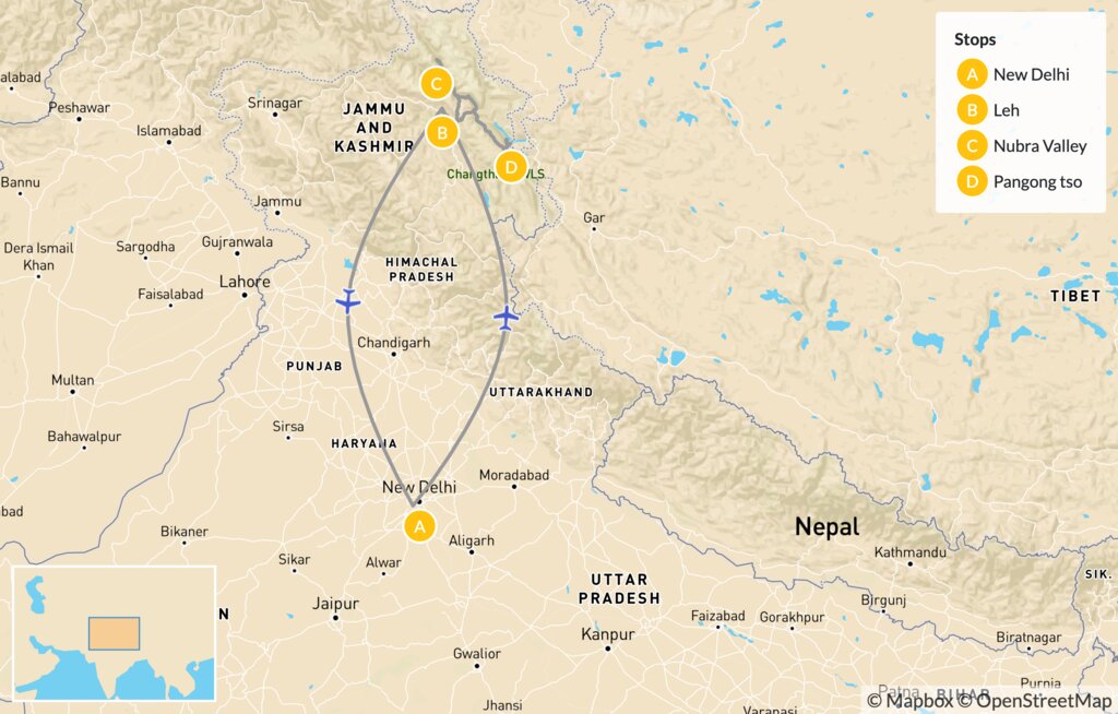Map of Northern India’s Monasteries & Mountains for Families – 7 Days