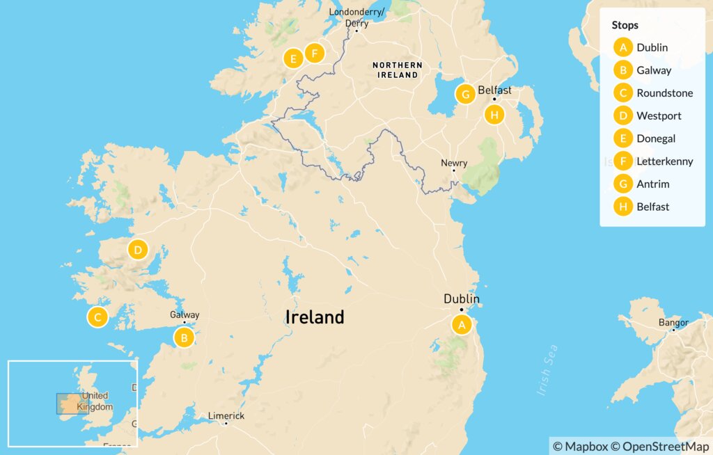 Map of Northern Ireland Self-Drive Adventure – 10 Days