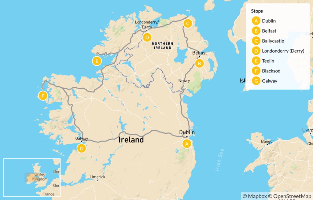 Map of Northern Ireland & The West Road Trip – 9 Days