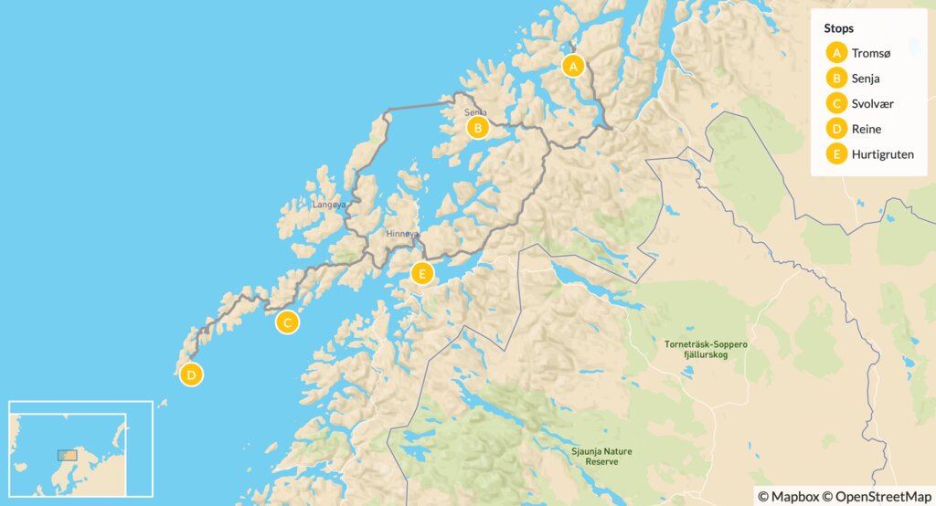Map of Northern Lights Adventures in Northern Norway: Road Trip to Senja, Svolvær & Tromsø – 16 Days