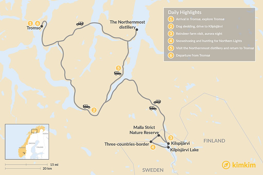 Map of Northern Lights in Norway & Lapland – 6 Days
