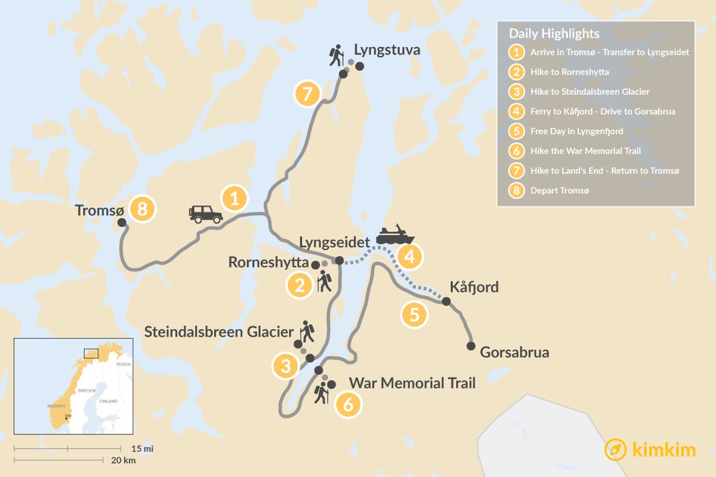 Map of Northern Norway Lyngenfjord Trek – 8 Days