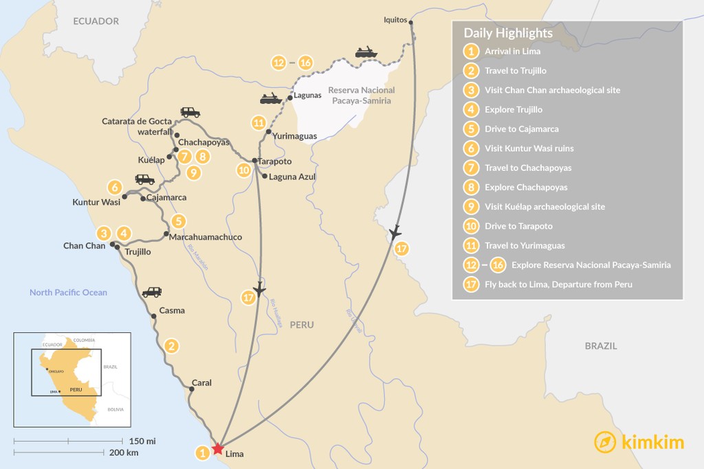 Map of Northern Peru Adventure: Lima to Iquitos – 17 Days