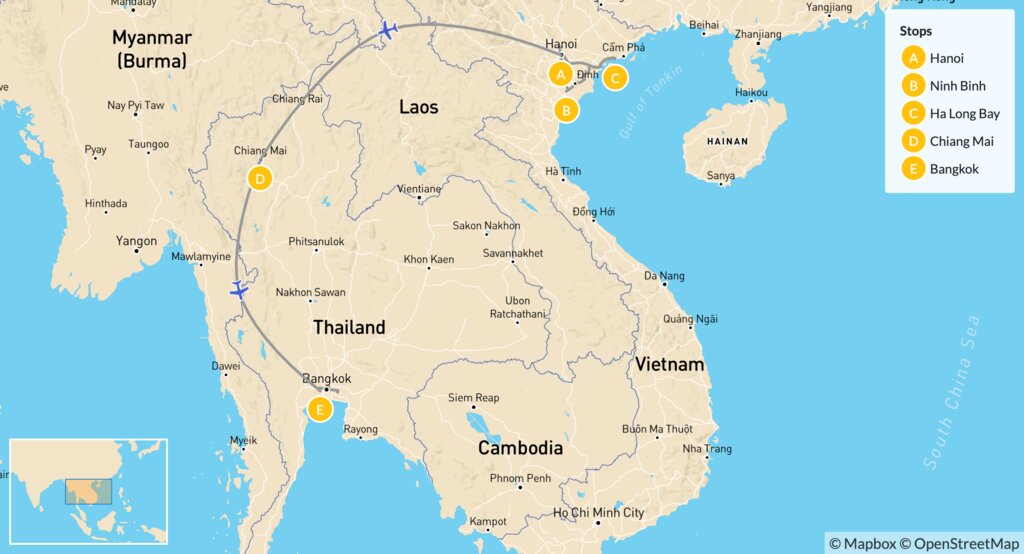 Map of Northern Vietnam & Thailand Nature Escape – 10 Days