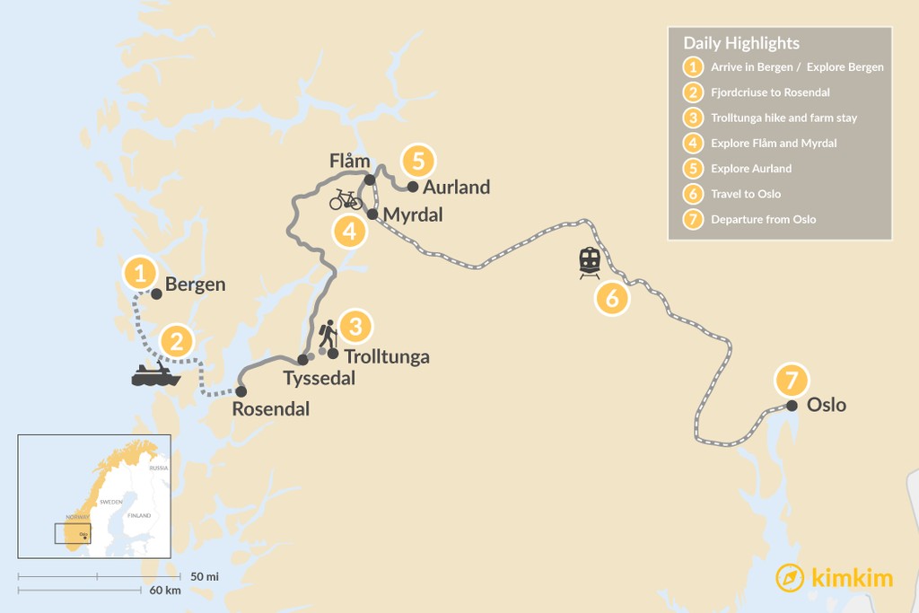 Map of Norway Hiking & Kayaking Adventure – 7 Days
