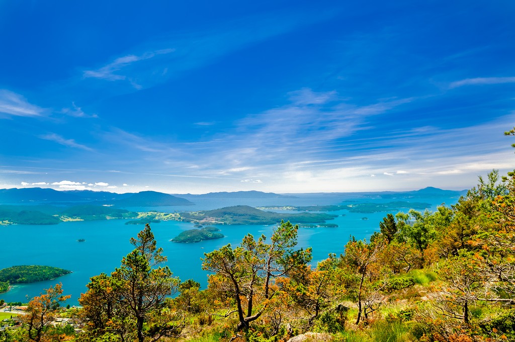 You’ll work your way through various sections of the trail culminating with the “ferrata himelstigen” or ladder to heaven. Here, you will reach the famous Trolltunga, or “troll’s tongue”—a smooth rock formation jutting out over Lake Ringedalsvatnet. The views are spectacular and are among the most photographed in all of Norway. Guided tours are recommended as this is a challenging hike that requires wind-and-waterproof clothing and enough food and water for the day.