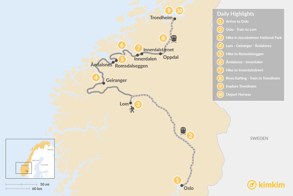 Map of Norway Outdoor Adventure: Oslo to Trondheim – 10 Days