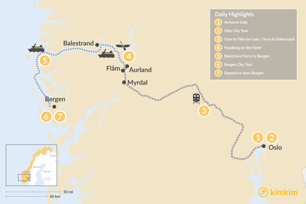 Map of Norwegian Highlights: Oslo, Balestrand & Bergen – 7 Days