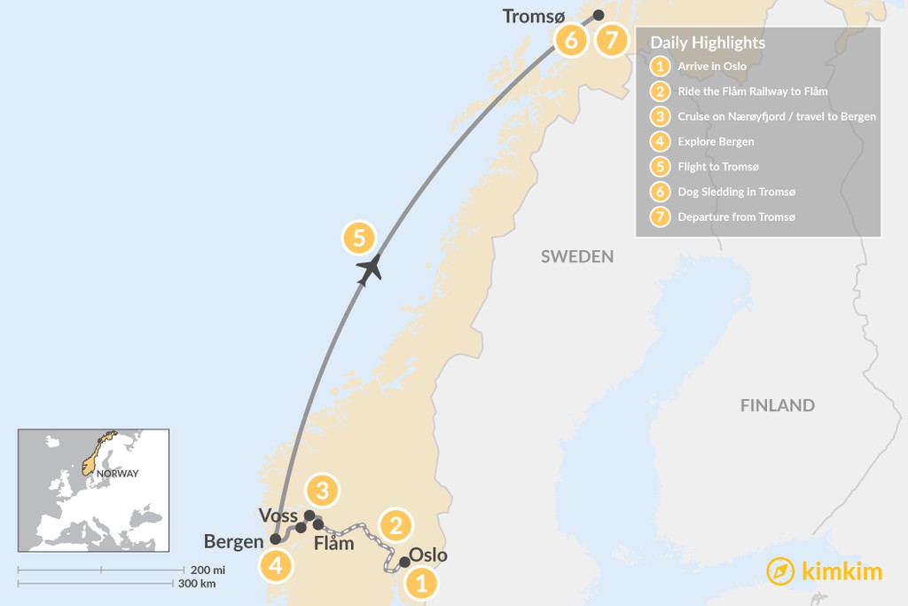 Map of Norwegian Winter: Oslo, Bergen & Tromsø – 8 Days