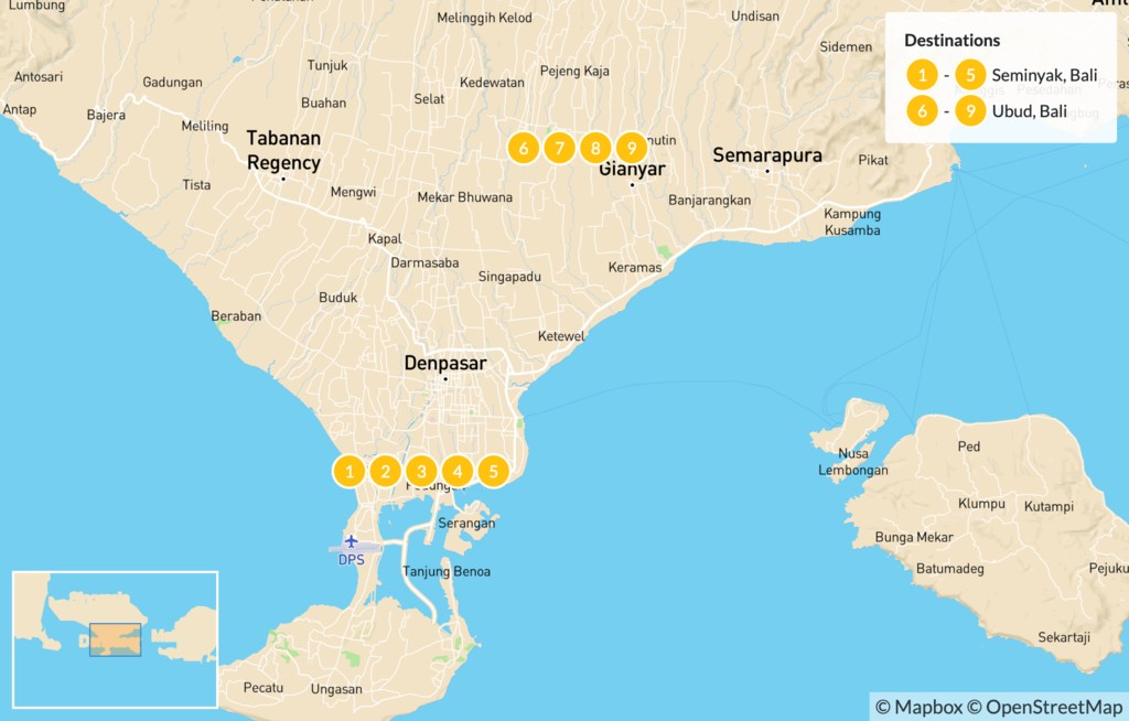 Map of Nyepi Celebration in Bali : Seminyak & Ubud – 10 Days
