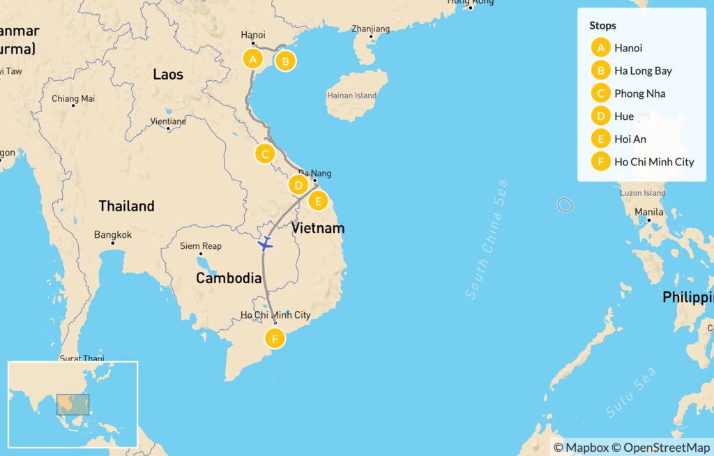 Map of Off-the-Beaten-Path Adventure in Vietnam – 16 Days