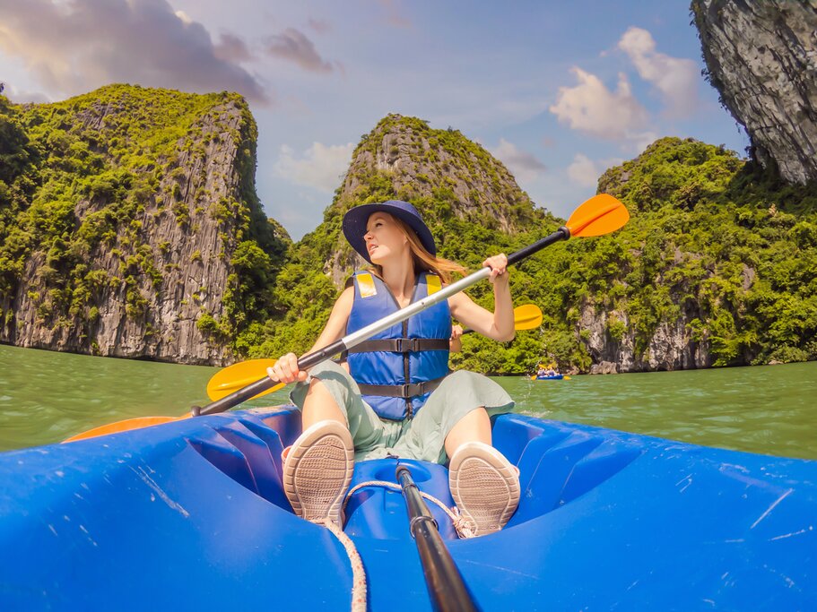 Enjoy a delicious breakfast on board while you cruise across Bai Tu Long Bay to Cong Dam. When you arrive, switch to a kayak to discover the dam’s hidden lagoons. As you paddle through the tranquil waters of Bai Tu Long National Park, you’ll be surrounded by dramatic limestone formations and vibrant green foliage. Keep your eyes peeled for wildlife like schools of fish darting among the rocks, small crabs hiding in the mangroves along the shores, and plenty of bird species flying overhead, including kingfishers, herons, and storks.