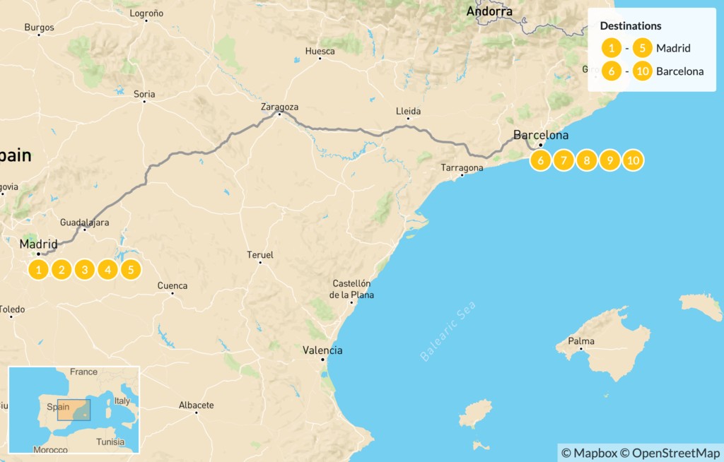 Map of Off the Beaten Path in Madrid & Barcelona – 11 Days