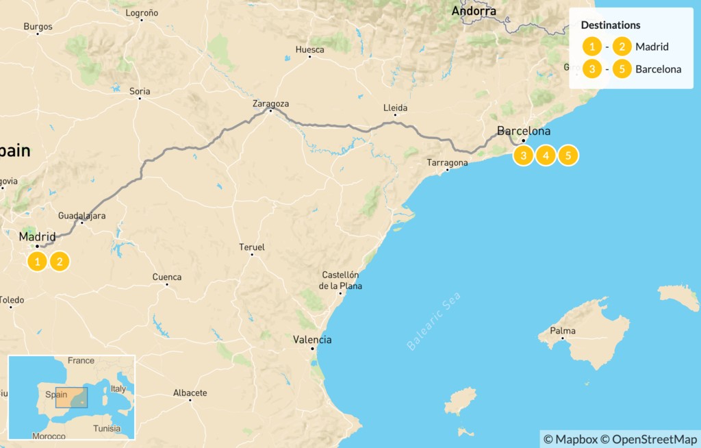 Map of Off the Beaten Path in Madrid & Barcelona – 6 Days