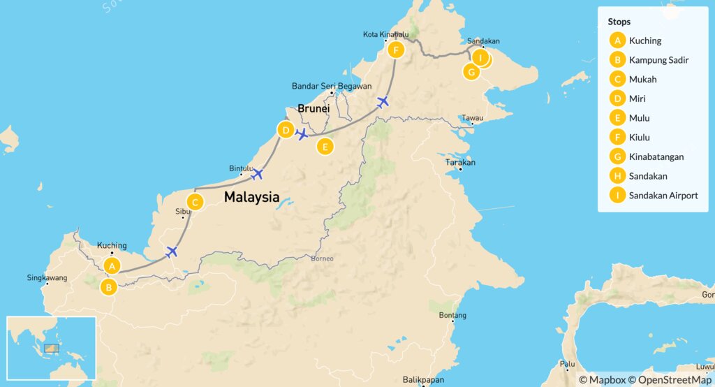 Map of Off the Beaten Path in Malaysian Borneo – 14 Days