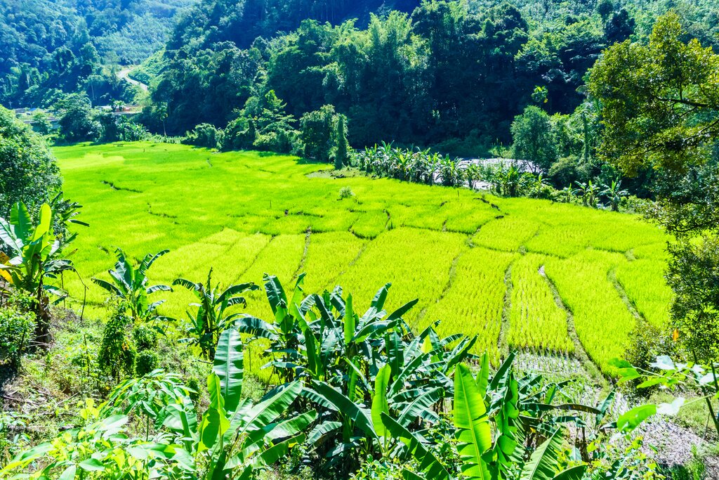 After lunch, walk around the village with your guide, who will teach you about the local way of life. During the walk, you’ll have stunning views of the surrounding valley, with its lush paddy fields and hanging bridges. If the weather is good, you can cool down by taking a dip in the river. In the evening, share a delicious dinner with your farmstay hosts.