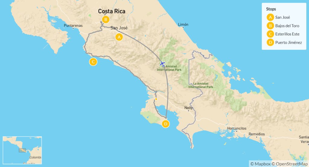 Map of Off-the-Beaten-Path Luxury on Costa Rica’s Pacific Coast – 10 Days