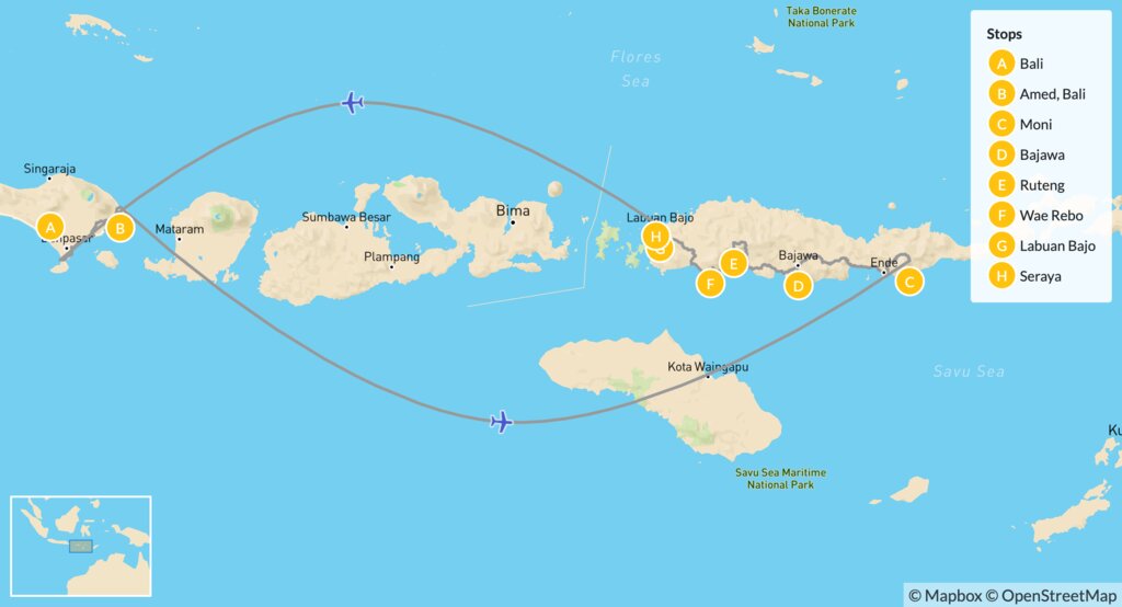 Map of Off the Beaten Path on the Islands of Bali & Flores – 13 Days