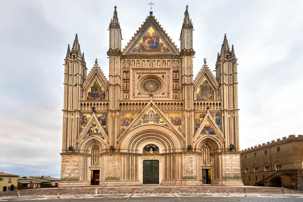 After breakfast, leave Lake Bolsena on a 30-minute drive northeast to Orvieto, located in the Umbria region of central Italy. Known as the “Green Heart of Italy,” Umbria remains off the radar to many tourists but rewards those who do make the journey with its rolling green hills, vineyards, and rich artistic/religious heritage. Orvieto is a fine example of all that Umbria has to offer: an attractive medieval town perched on a hill in the scenic green countryside.