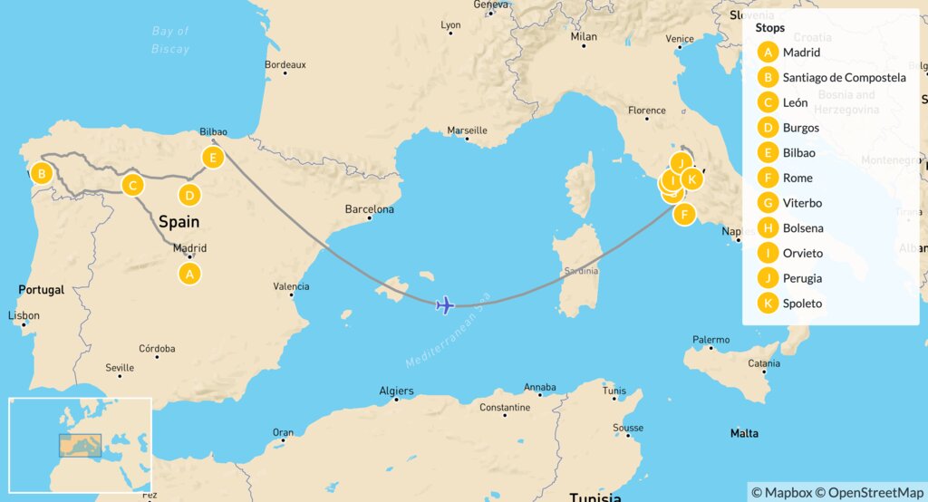 Embark on an epic three-week road trip around Spain and Italy, visiting highlights that tourists rarely see. It begins in captivating Madrid, followed by a drive to Galicia and the Basque Country to indulge in rich culture and delicious cuisine. Next, fly to Italy to enjoy the highlights of Rome, and then drive to picture-postcard regions like Lazio and Umbria to visit historic villages and enjoy outdoor adventures.