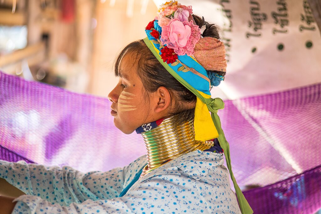 Mae Hong Son province is dotted with tiny villages home to Thailand’s ethnic highland communities, often referred to as hill tribes. These groups include the Hmong, Karen, and Shan people, whose ancestors emigrated from Myanmar and China. Each community has its own distinctive dress, language, and history. Many, like the Hmong and Karen tribes, are renowned for their unique and colorful clothing as well as their prowess at embroidery/needlework.