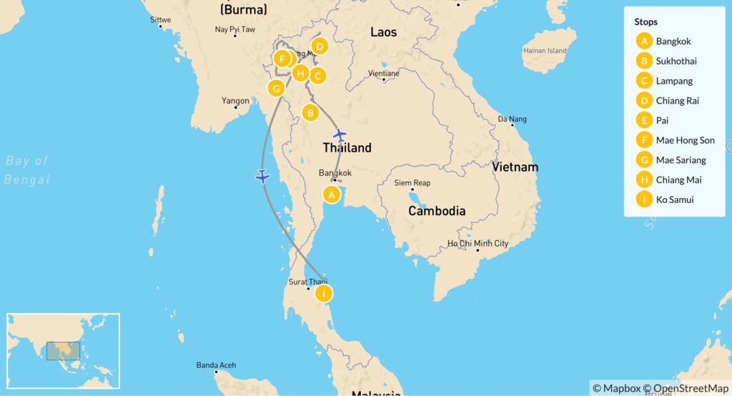 Map of Off-the-Beaten-Path Thailand – 14 Days