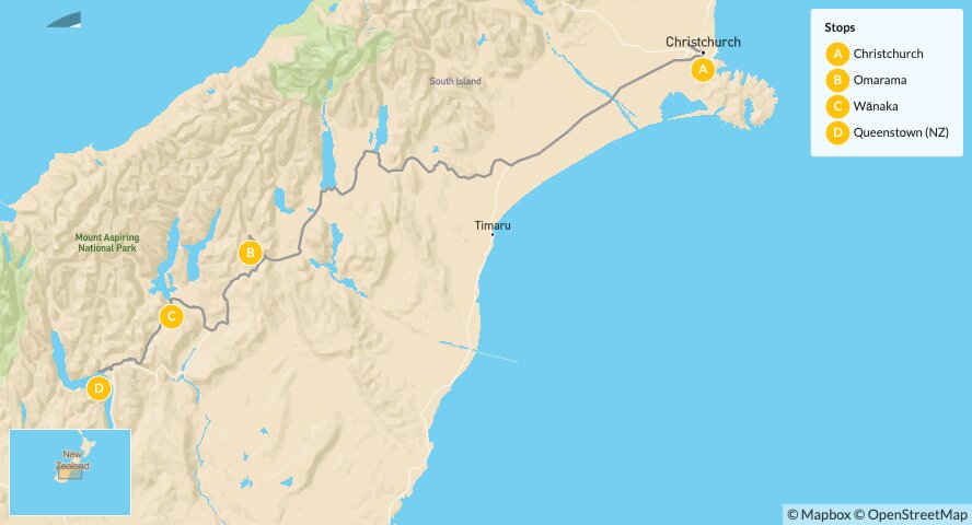 Map of Off-the-Beaten-Track Luxury in New Zealand’s South Island – 7 Days