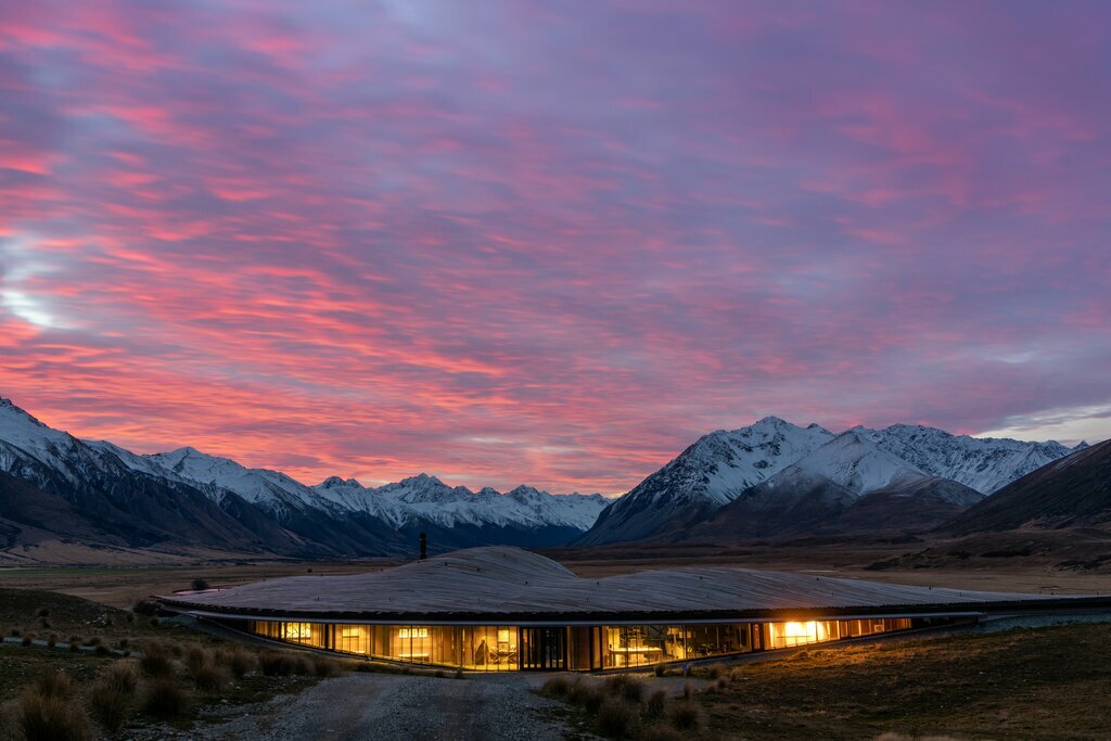 Drop your car at the heliport in Wānaka and fly above mountain valleys to your next exclusive lodge, Minaret Station, which is only accessible by helicopter. Set on a 50,000-acre (20,234 ha) high country farm with herds of deer, sheep, and cattle, the property is surrounded by snowy mountains and borders UNESCO-listed Mount Aspiring National Park and sparkling Lake Wānaka.