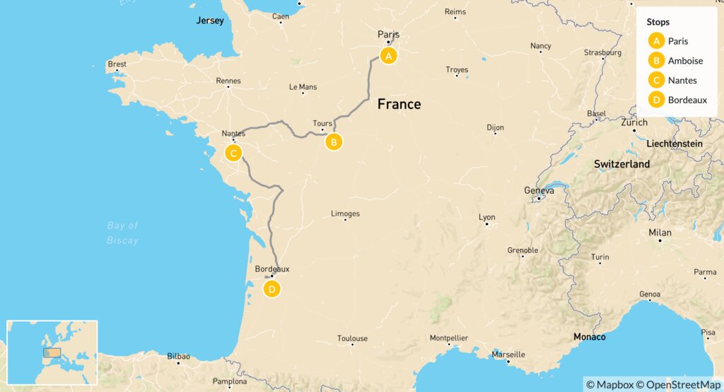Map of Olympic Adventure in Paris, Brittany & Bordeaux – 10 Days