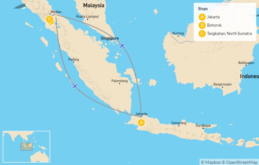 Map of Orangutans & Elephants: Discover Indonesia’s Sumatra Jungle – 6 Days