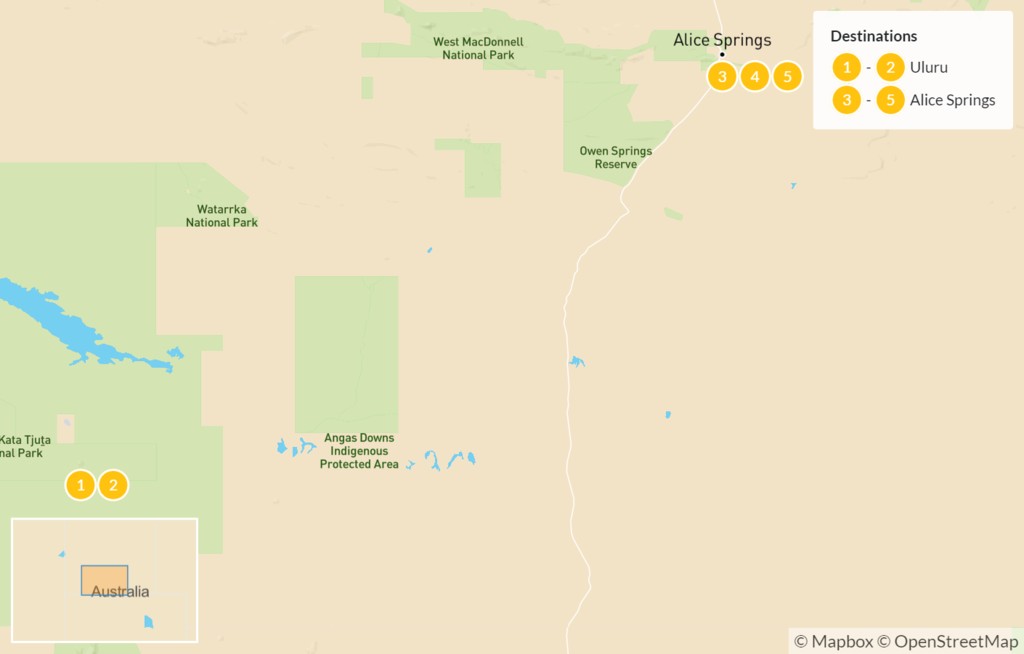 Map of Outback Adventure: Uluru & Alice Springs – 5 Days
