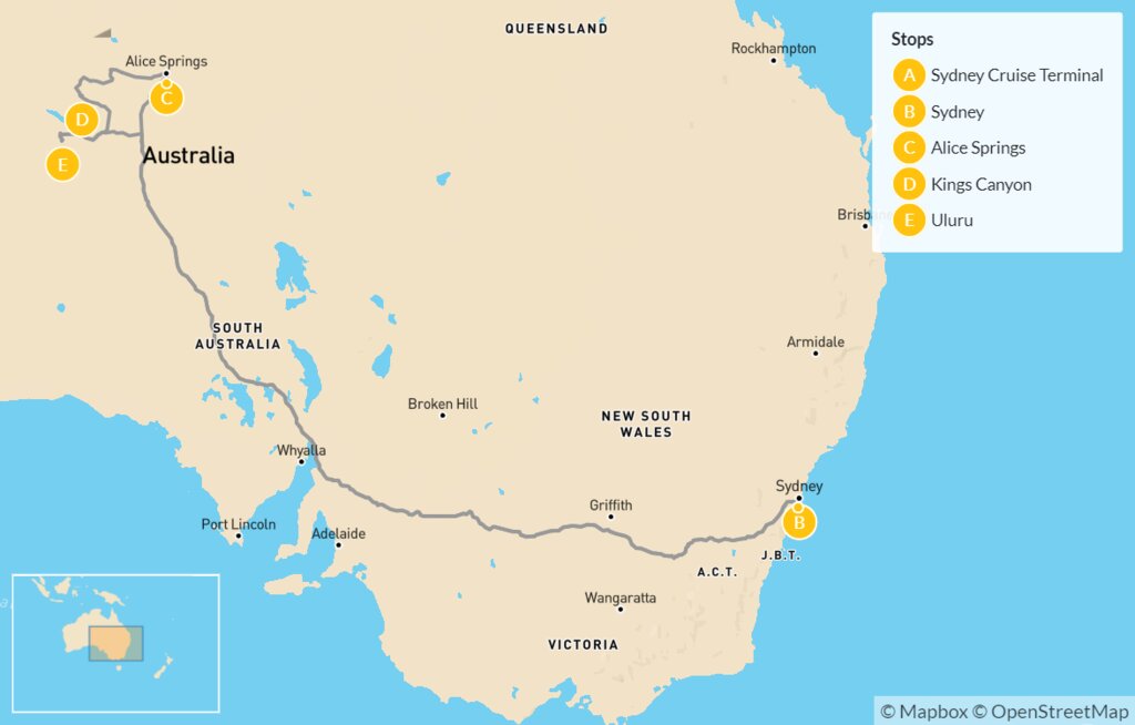 Map of Outback Road Trip Adventure: Sydney, Alice Springs & Uluru – 8 Days
