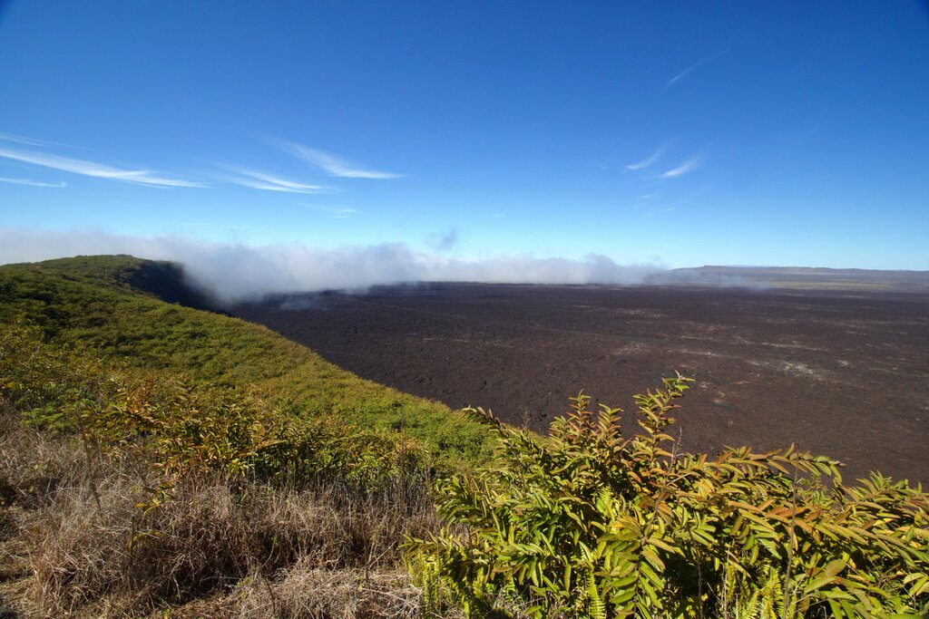 Hike around the crater of Sierra Negra Volcano today. One of the largest shield volcanoes in the world, this nearly 6-mile (10 km) diameter crater is also one of the most active volcanoes in the archipelago: its most recent eruption happened in 2018, and the volcano’s northern side is largely devoid of vegetation due to lava flows.