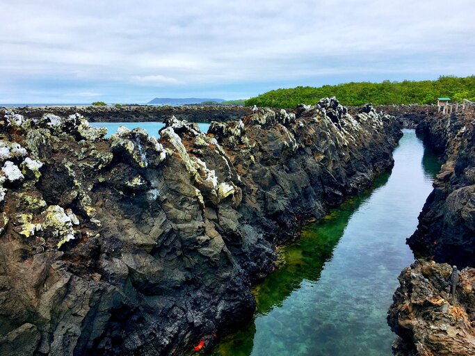 Your six-hour roundtrip hike to the volcanic summit will begin from Puerto Villamil. As you approach the crater, explore its lava landscapes and enjoy views of the Isabela and Isla Fernandina volcanoes. End your day with time on the beach or snorkeling through the mangrove forests of Concha Perla. This natural pool is a habitat for turtles, sea lions, and penguins, and the clear water offers excellent visibility.