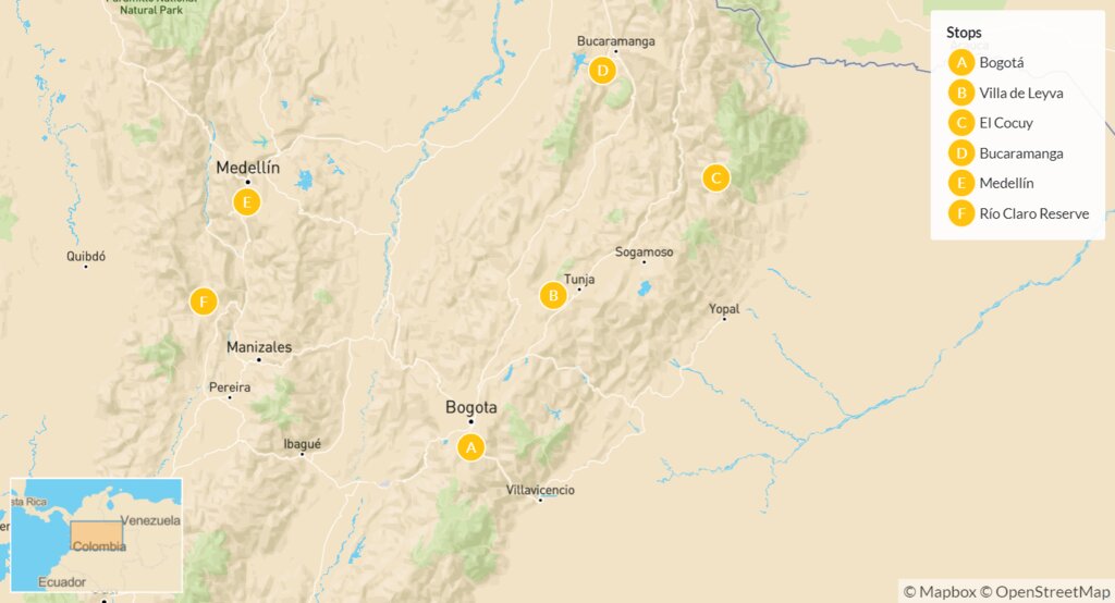 Map of Outdoor Adventures in Colombia: Bogotá, Medellín & El Cocuy – 14 Days