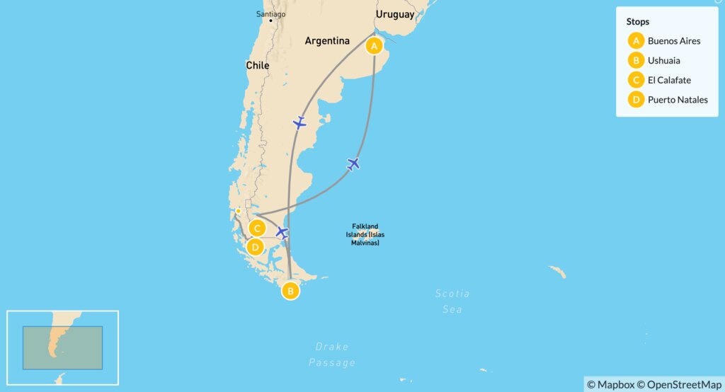Map of Outdoor Adventures in Patagonia’s National Parks – 11 Days