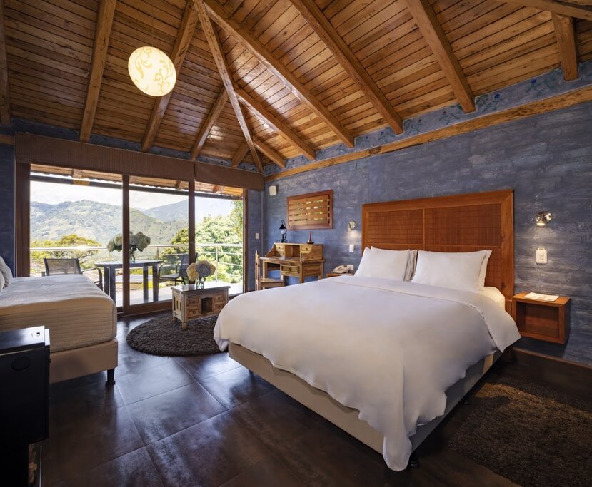 Upon arrival, you’ll check into Luna Volcán Adventure Spa. Get ready for more hacienda-style living, as this idyllic property sits on a hill with prime views of Baños and the surrounding Andes. It offers an array of themed rooms and suites tailored to couples, families, friend groups, and solo adventurers. They’re all equipped with plush beds, and some have garden and Andes views from private terraces. Expect even better views when you head up to the pool area, where you can take a dip or soak in the Jacuzzi.