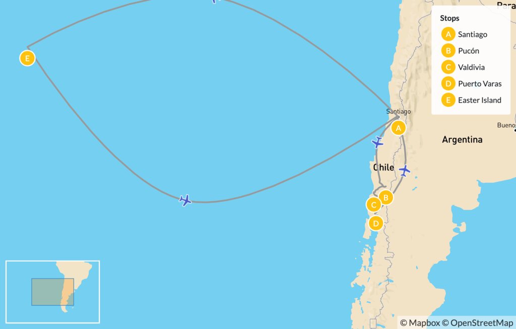 Map of Outdoor Culture Adventure in Chile: Lake District & Rapa Nui – 16 Days