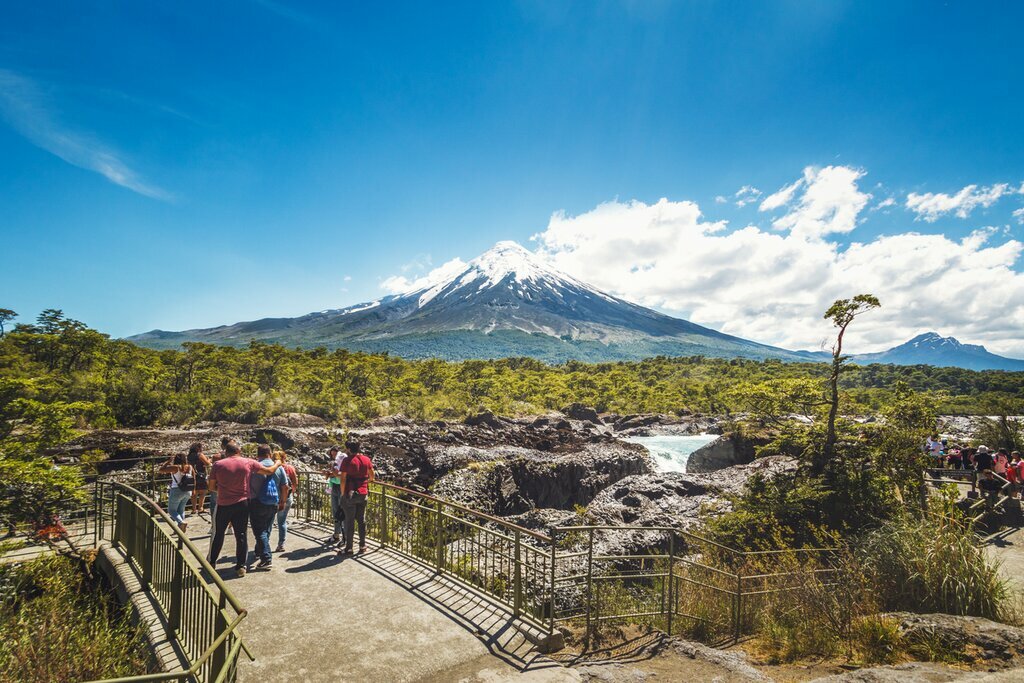 Visit Lago Todos los Santos and its surrounding beaches, eventually making your way to Ensenada, which sits right at the foot of the 8,700-foot (2,652 m) stratovolcano known as Osorno. The volcano’s nearly perfect conical symmetry combined with its scenic location above the lakes makes it one of Chile’s most well-known landmarks, and while it hasn’t erupted in many years, it’s still considered one of the most active.
