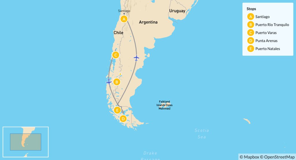 Map of Outdoor Family Adventure in Chilean Patagonia – 14 Days