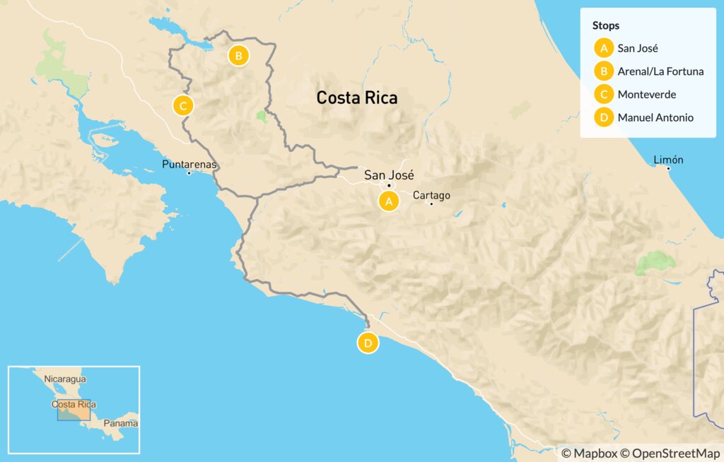 Map of Outdoor Family Adventures in Costa Rica – 7 days