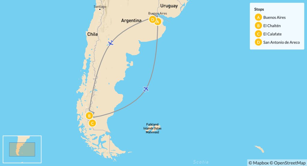 Map of Outdoor Family Fun in Buenos Aires & Argentine Patagonia – 14 Days