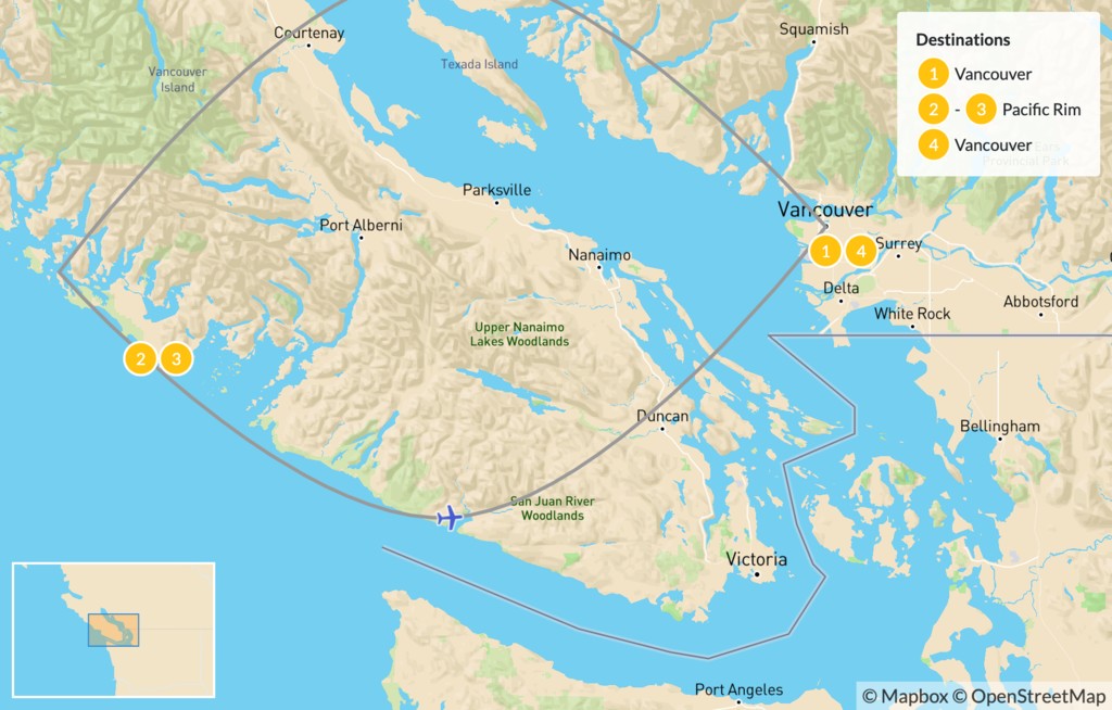 Map of Pacific Rim Adventure: Vancouver to Tofino – 5 Days
