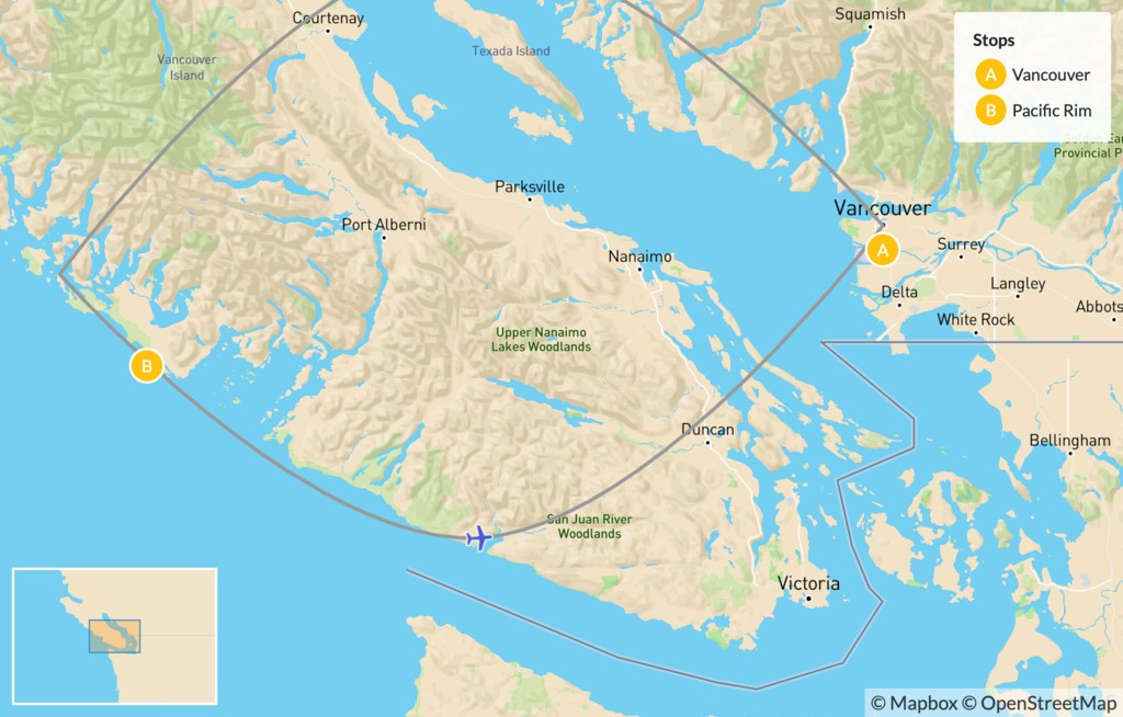 Map of Pacific Rim Adventure: Vancouver to Tofino by Flight – 4 Days