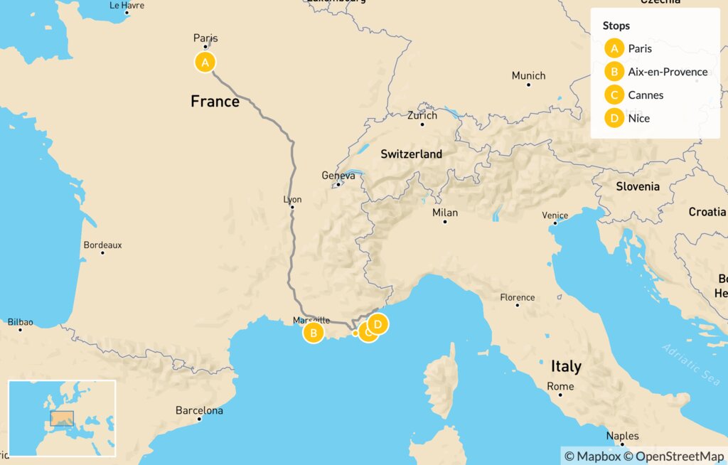 Map of Paris, Provence & the French Riviera – 10 Days
