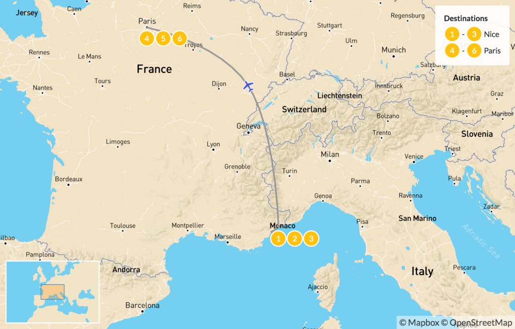| Day 1 | Arrive in Nice – Explore the City | Nice |