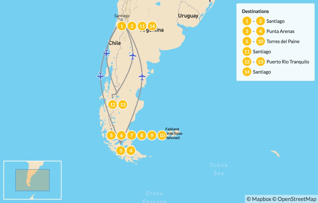 | Day 3 | Fly from Santiago to Punta Arenas | Punta Arenas |
