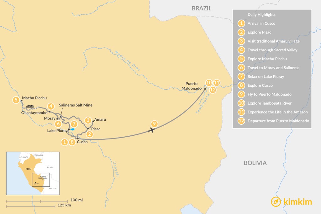 - Explore the Sacred Valley, including Machu Picchu, on foot, bike, and train