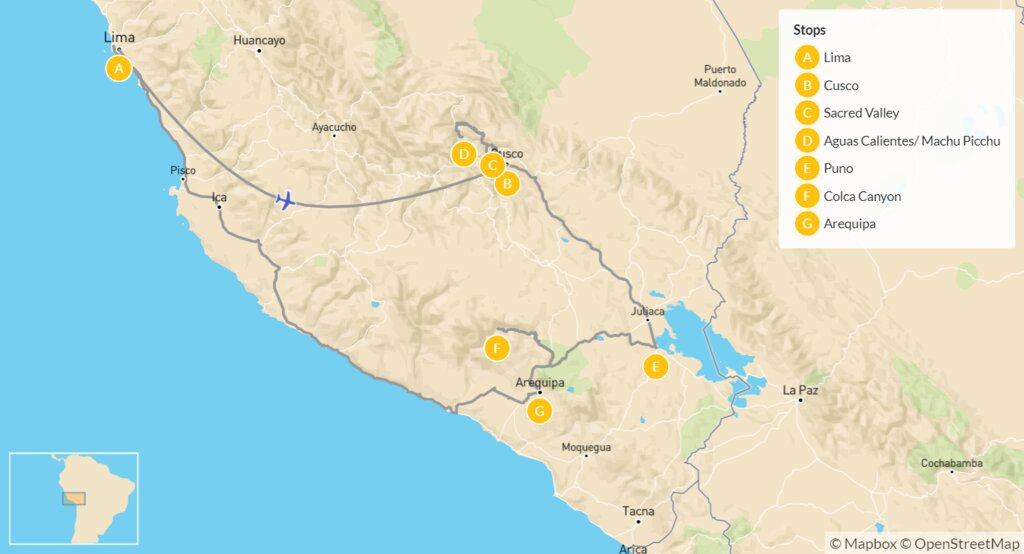 Map of Peru in a Nutshell: Lima, Cusco, Machu Picchu, Puno & Arequipa – 16 Days