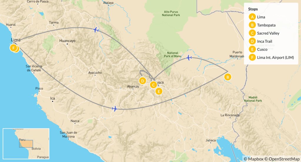 Map of Peru’s Amazon Rainforest & Inca Trail Adventure – 16 Days